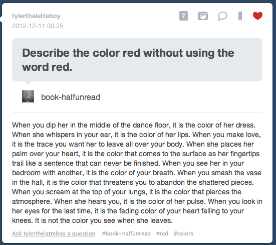December 15, 2012March 8, 2017 Ama Rose The Color Red. Share this: Share on X (Opens in new window) X Share on Facebook (Opens in new window) Facebook Share on Tumblr (Opens in new window) Tumblr Like Loading... Related