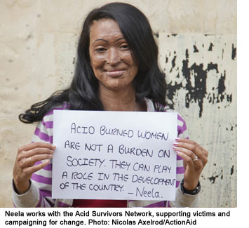 Acid attack is common in Pakistan, Bangladesh, India, Afghanistan, Nepal, Cambodia, and a few other countries. Men throw acid on us because men are angry with us for ending relationships and for refusing sexual harassment, sexual exploitation, proposals of marriage, demands for dowry. They throw acid on us for attending schools, for not wearing Islamic veils, for not behaving well, for speaking too much, for laughing loudly. (Source)So hard to still hear and see stuff like this