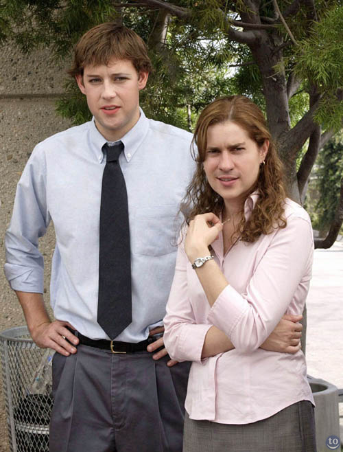 THE OFFICE — NBC Series — “Fire” — Pictured: (l-r) John Krasinksi as Jim Halpert, Jenna Fischer as Pam Beesly — NBC Universal Photo: Paul Drinkwater