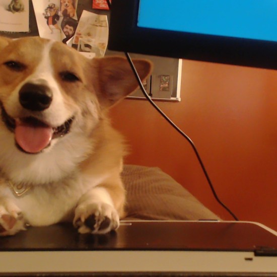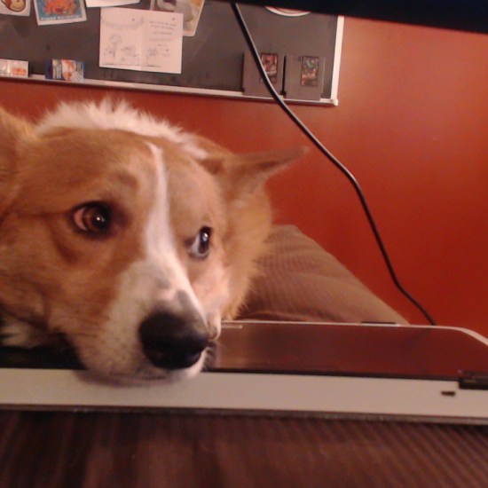 He is not allowed to cross the keyboard barrier when I have food.