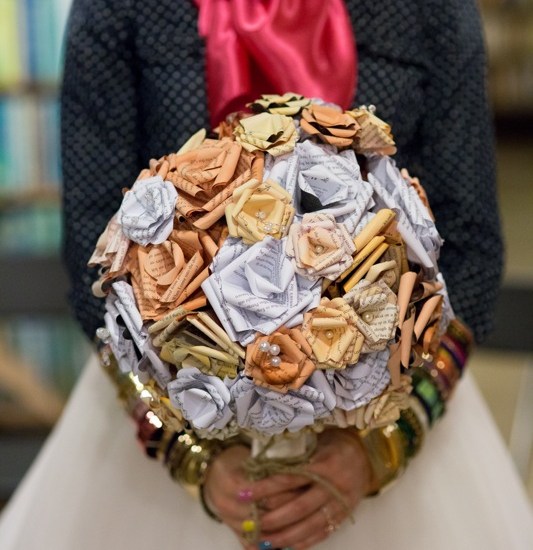 my bouquet: was made from the pages of ransom’s novel (miss peregrine’s home for peculiar children).